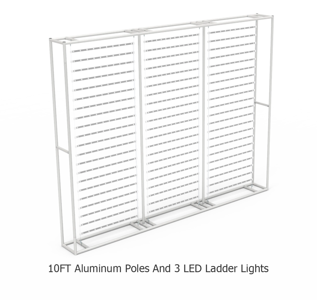 Thisbacklight portable display is constructed from a sturdy aluminum frame and features easy to use fabric graphics to ensure a hassle free setup. Each led backlit display stand is easy to assemble, with labels and bungee cords to easily connect the aluminum poles and attach the 2 LED ladder lights. The enclosed LED light illumination creates a consistent, homogenous glow, that provides an evenly backlit fabric full color graphic mural.