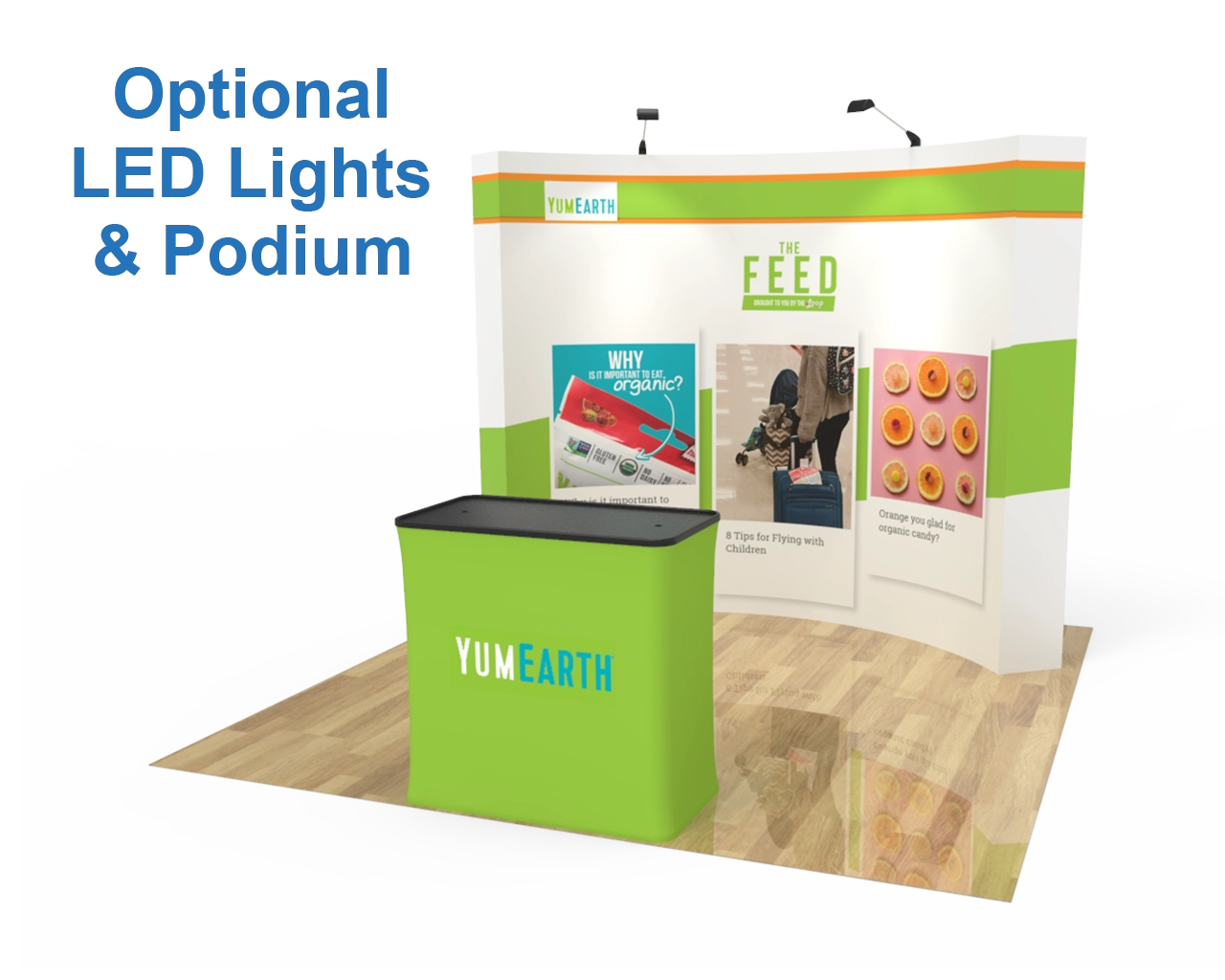 The 10ft curved velcro fabric pop up trade show display is quick and easy to assemble with its pop-up mechanism.The light weight frame is durable and portable. It is a user-friendly and effective advertising tool that can brighten up any trade show space or special event area in mere seconds! It can they can be set up instantly and are easy to travel with to and from each display destination. Attached fabric graphic on to the pop-up frame with Velcro, and folded along with the frame for storage or transport. When your next show comes around, simply expand the pop-up frame, and your graphic will expands with it.