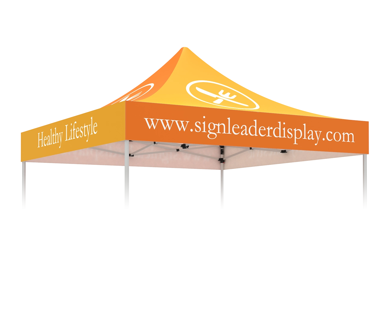 Custom canopy tents additionally known as pop up tents are a first-class manner to increase brand attention to your enterprise at outside activities, sporting events, fairs and festivals. Signleader Display's 10x10 custom printed canopy top make use of full digital printing which allows your event tent to be a 100% customizable with multi-coloration imprint. Promote and appeal to new customers with our commercial grade custom canopy tent for events.