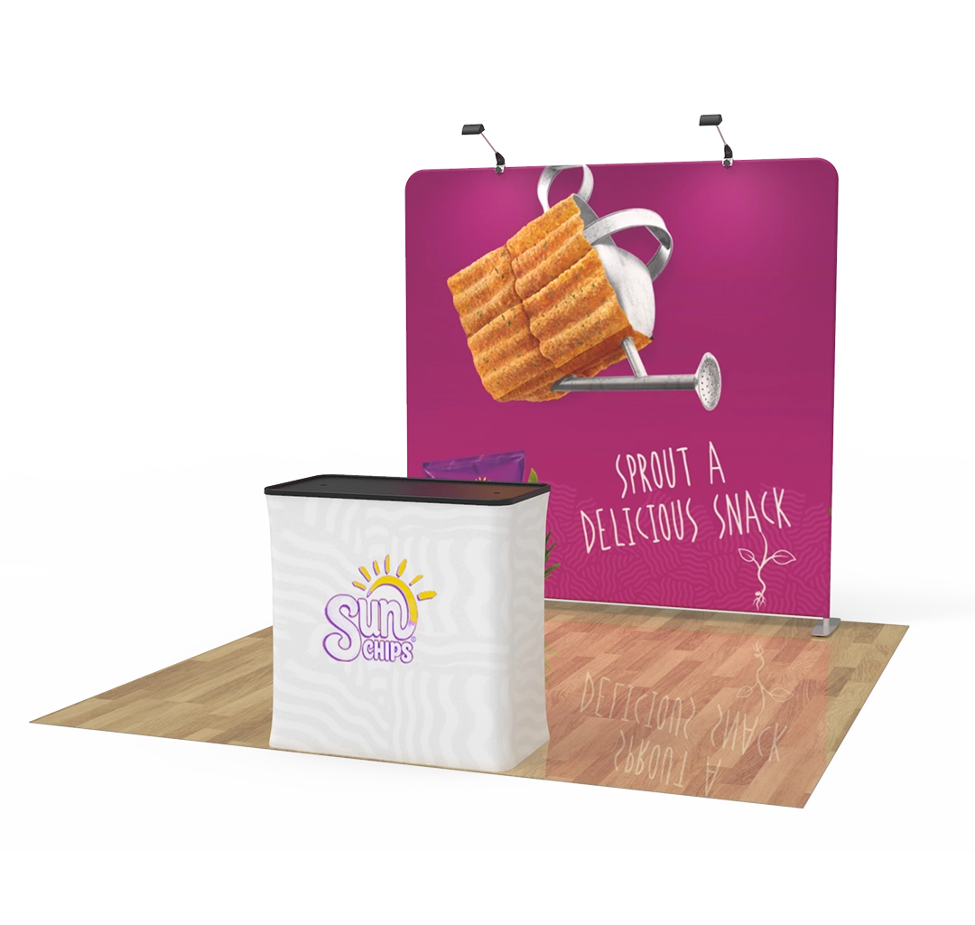 1pc 8ft Flat & Collapsible Aluminum Snap-Tube Frame 1pc Zippered Heat Transfer Printing Tension Fabric Graphic 1pc Hard Case to Podium with Heat Transfer Printing Tension Fabric Graphic |