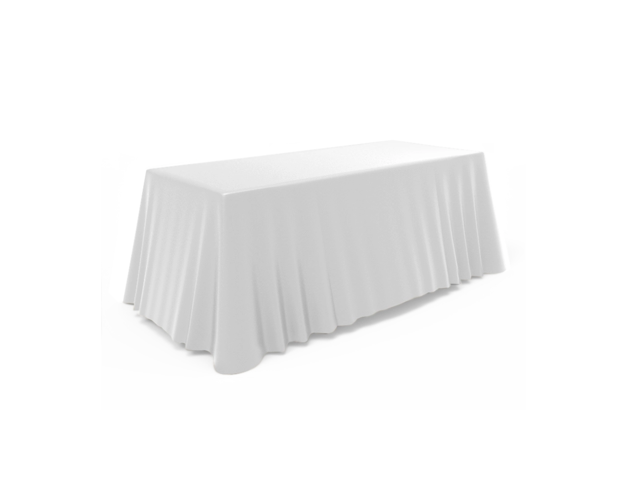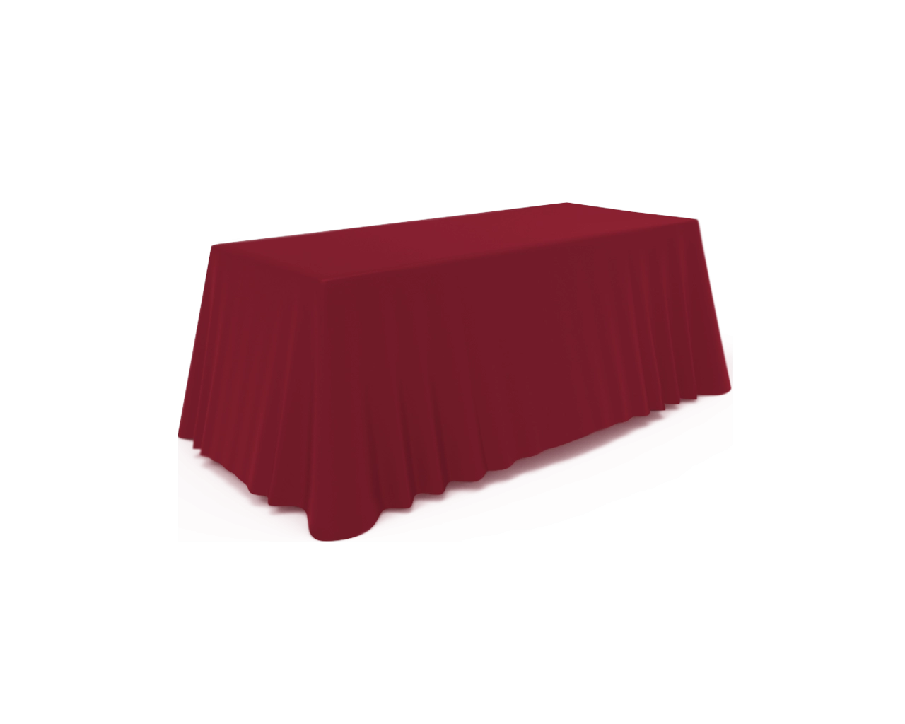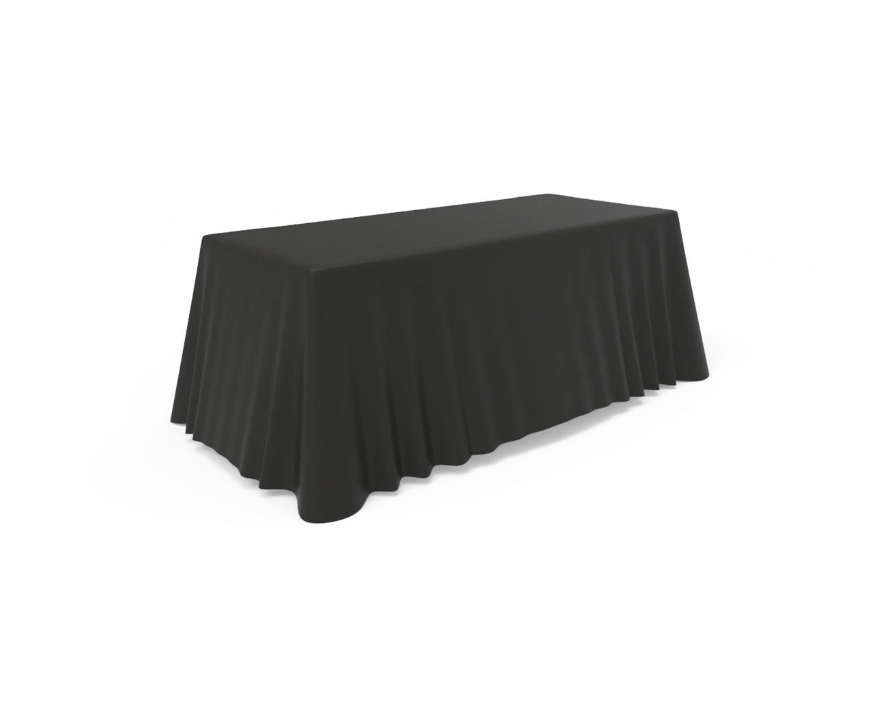 The tablecloth can be used with a table runner to match any decor. Simple and economic the solid color table throw is perfect for tradeshows, expos. job fairs and more. Set off your promotion with these Solid Color Table Throws imprint that features a vibrant, dye sublimated design ready to highlight your business! Choose a 6' or 8' foot table throw in any of our 6 color options. Table throw is four-sided for complete coverage.
