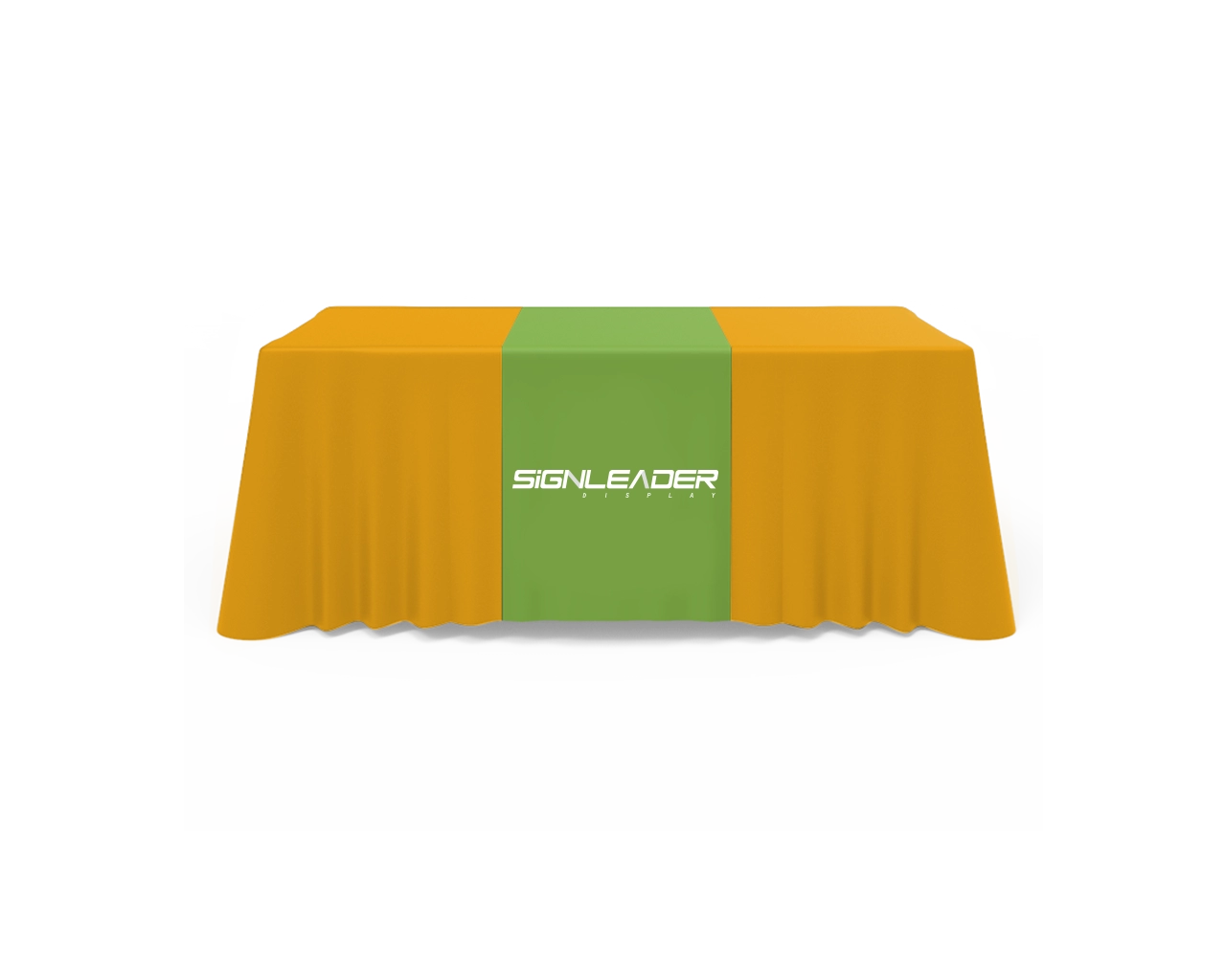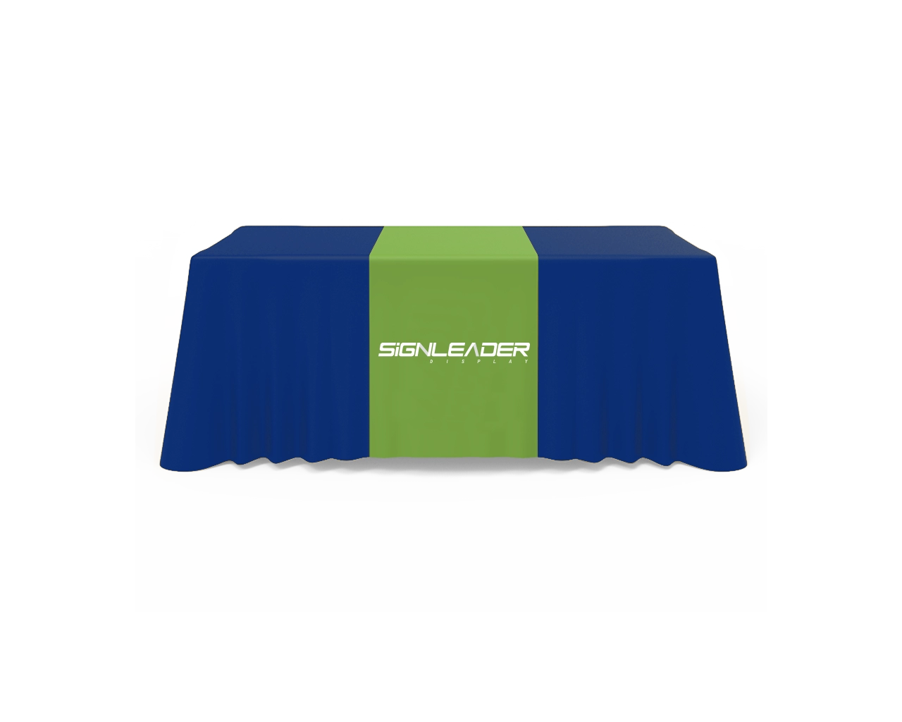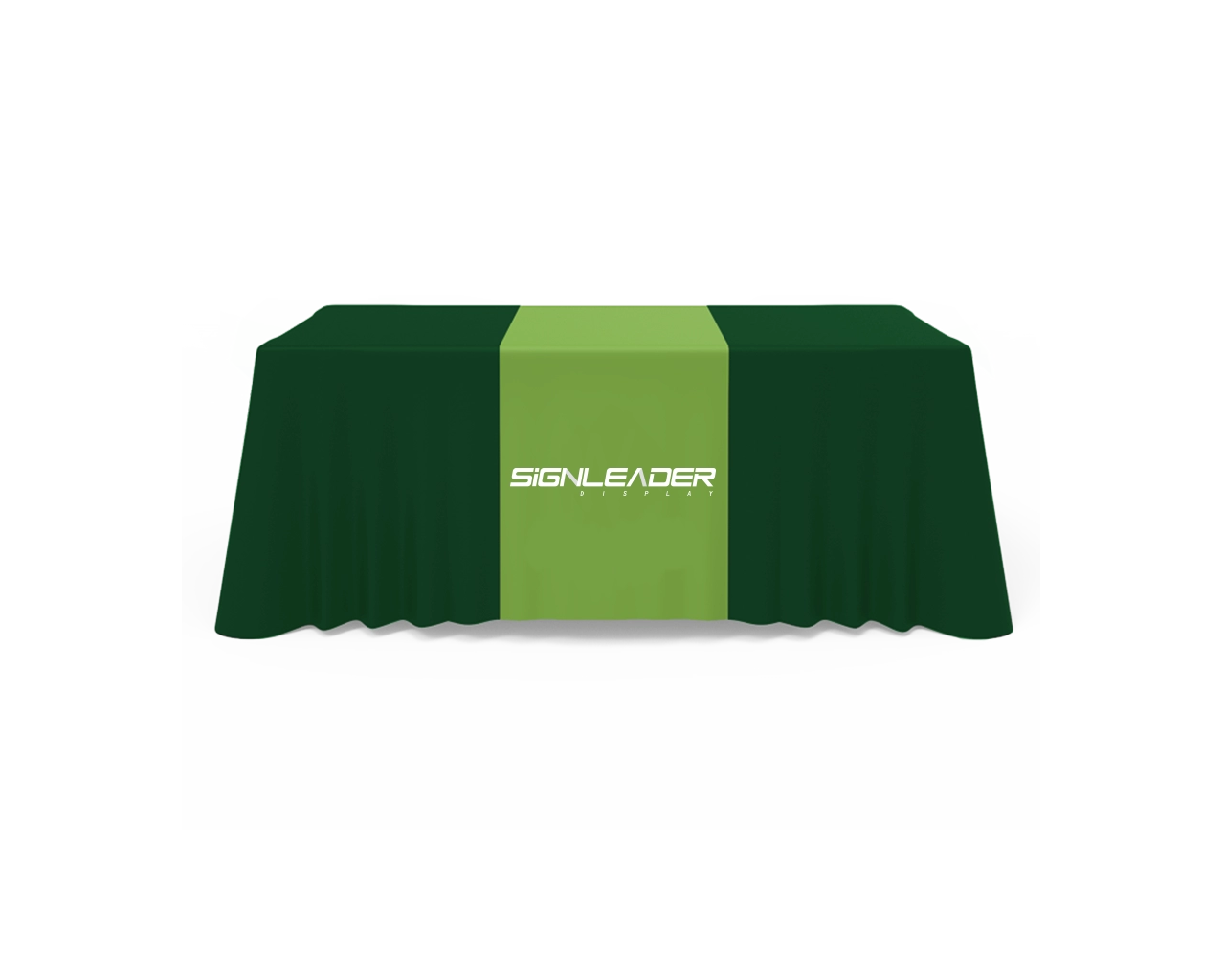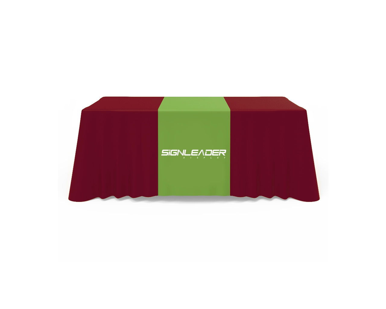 2. Solid Color Table Throws: These pre-printed table covers are available in 6 colors. Simple and economic the solid color table throw is perfect for tradeshows, expos. job fairs and more. Choose a 6' or 8' foot table throw in any of our 6 color options. Table throw is four sided for complete coverage.