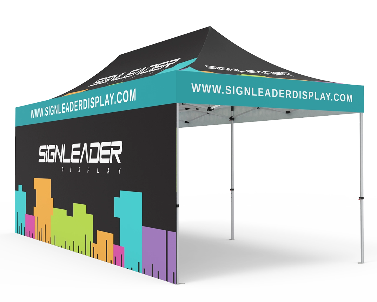 Turn the great outdoors into a great promotional opportunity, attract attention and stand up to the elements with branded canopy tents. A high resolution custom printed canopy tent is a nice option for your various events. As a manufacturer, Signleader Display is not only the industry leader in heavy-duty pop up tents, but we can provide various options to meet your budget and needs.